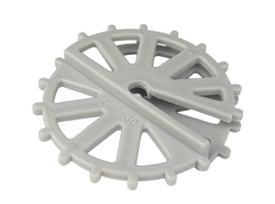 Kääntyvää pyörää käytetään kevyessä verkko- tai irtorautavahvistuksessa esimerkiksi seinissä, ohuissa laattavaluissa, tukimuureissa jne. Paina pyörä raudan päälle ja käännä 90 astetta. Se istuu tukevasti raudan ympärille eikä putoa. Suositellaan kiinnitettäväksi raudoitukseen ennen muottiin asettamista. Vakiona betonin harmaa väri.
